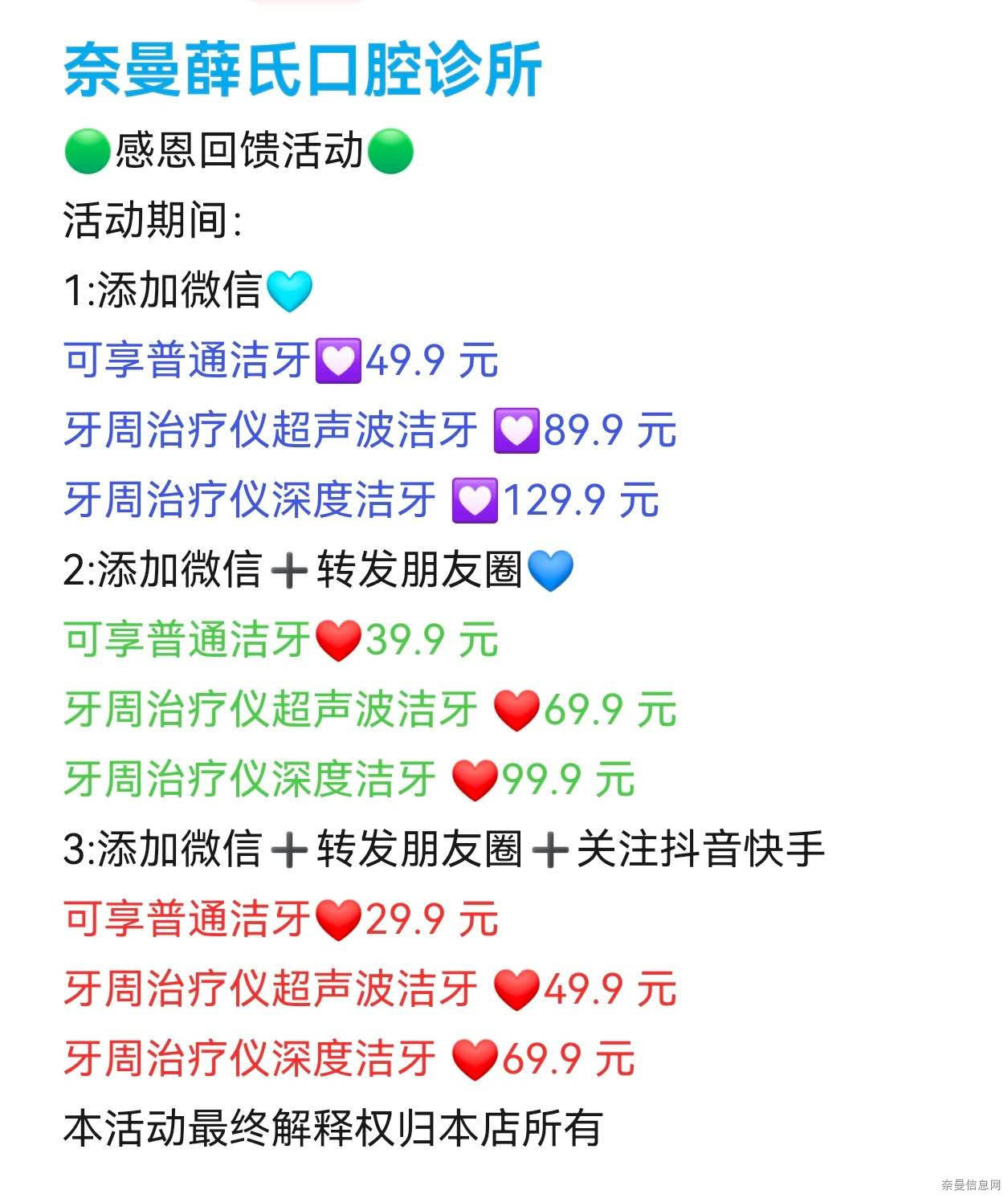 ​感恩回馈,特推出洗牙活动,活动如下👇